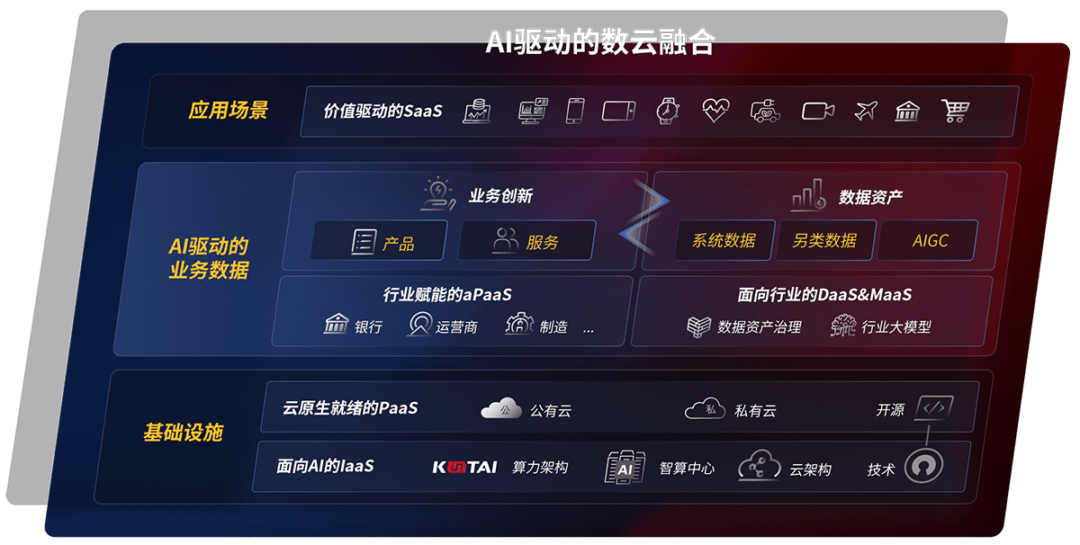 以尊龙鲲泰全国产化计算产品帮助金融行业客户构筑数字底座;以丰富的AI和数云产品及方案,,保障数据安全,,,,挖掘数据价值,,提升服务品质